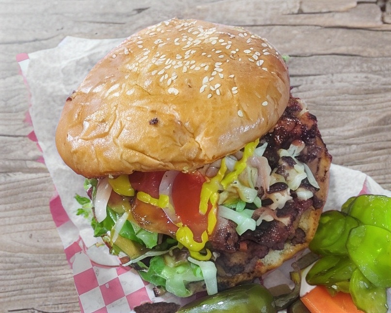 pan de hamburguesa carne de res chorizo queso blanco lechuga jitomate cebolla catsup mostaza crema