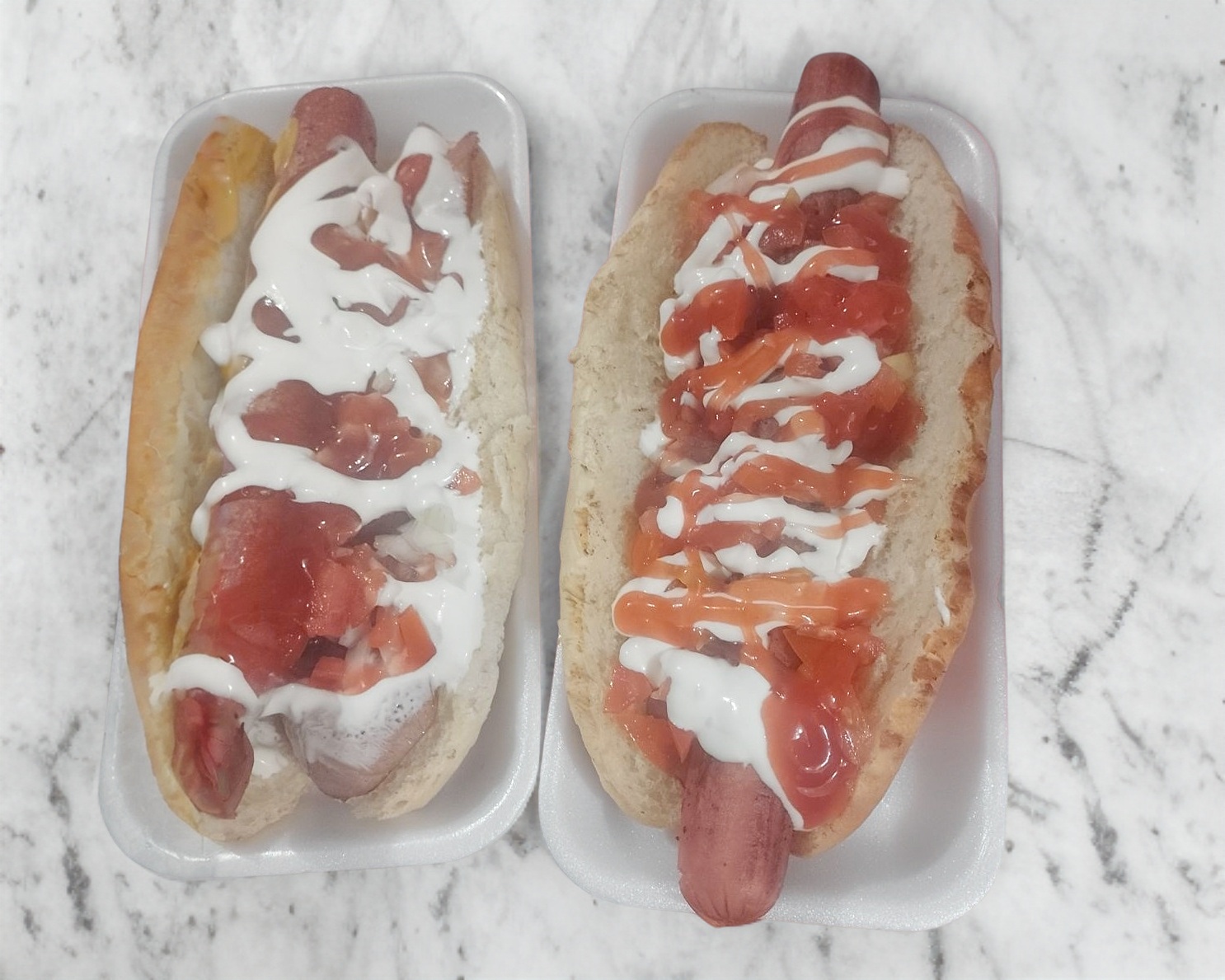 Delicioso Hot Dog Gigante :Salchichas, crema, jitomate, cebolla,catsup,mostaza