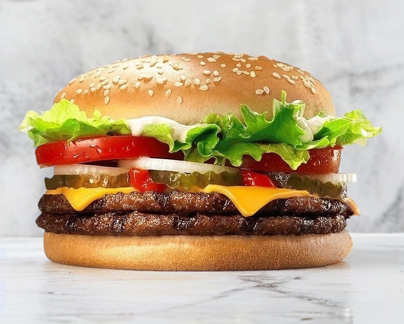 Deliciosa hamburguesa doble carne, acompañada de Crema, catsup, mostaza, cebolla, jitomate, lechuga, chile jalapeño,