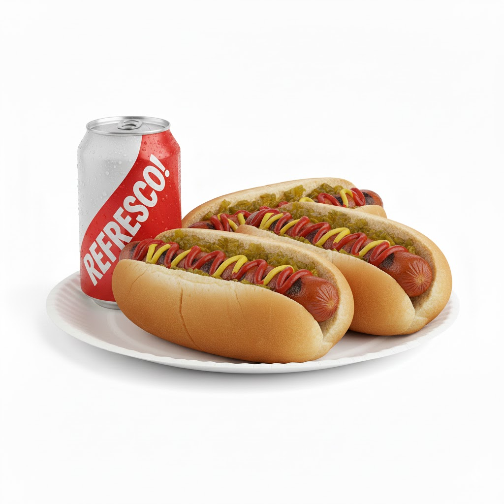Combo Cuates (3 Hot Dogs + 1 Refresco)