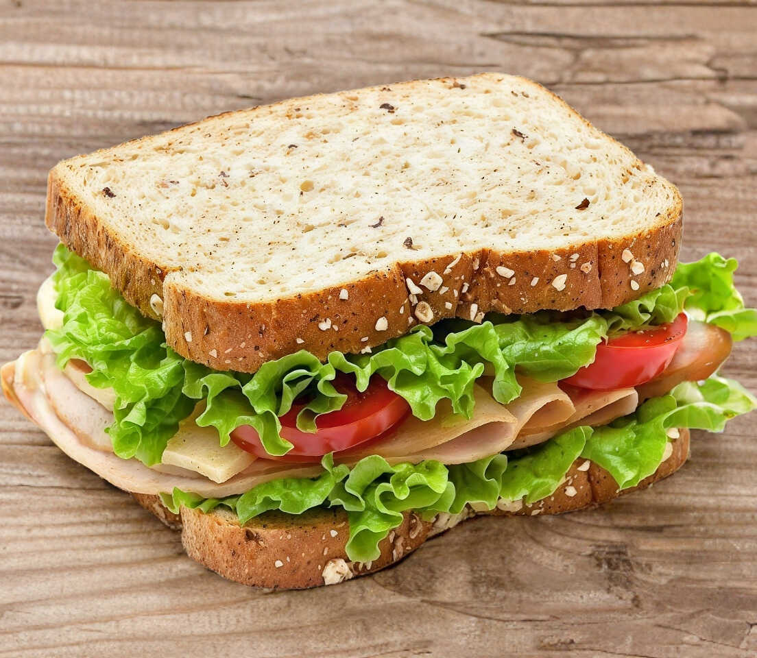 Pan integral ,vegetales ,proteína (jamon y panela )