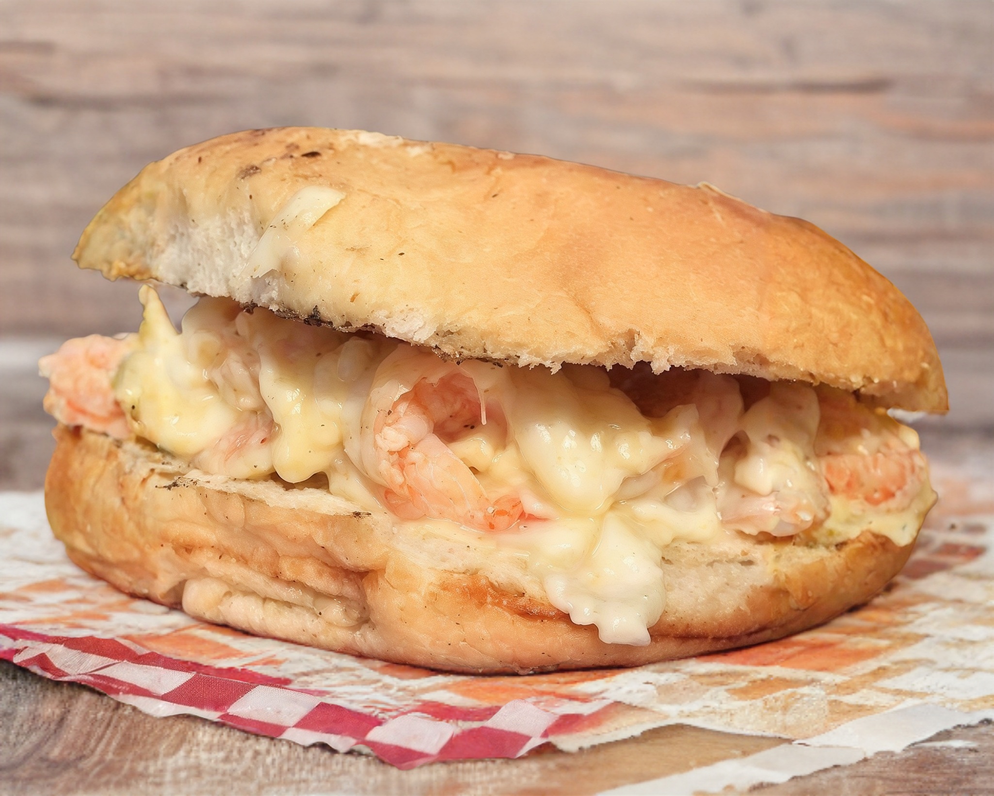 Pan artesanal. Media docena de camarones gratinados con queso manchego.
