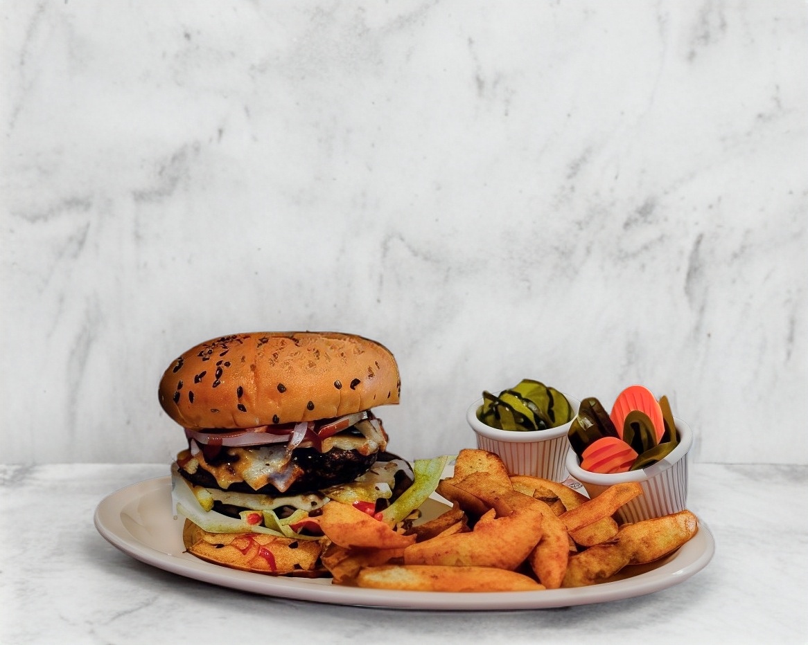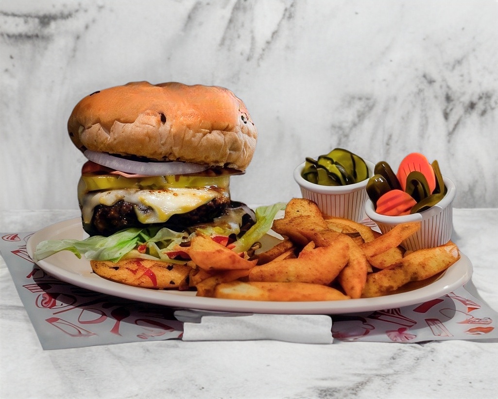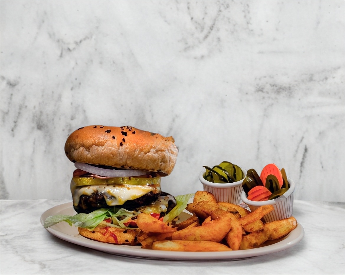 180 gr de nuestra deliciosa carne Angus. Jitomate, lechuga, cebolla y queso amarillo.