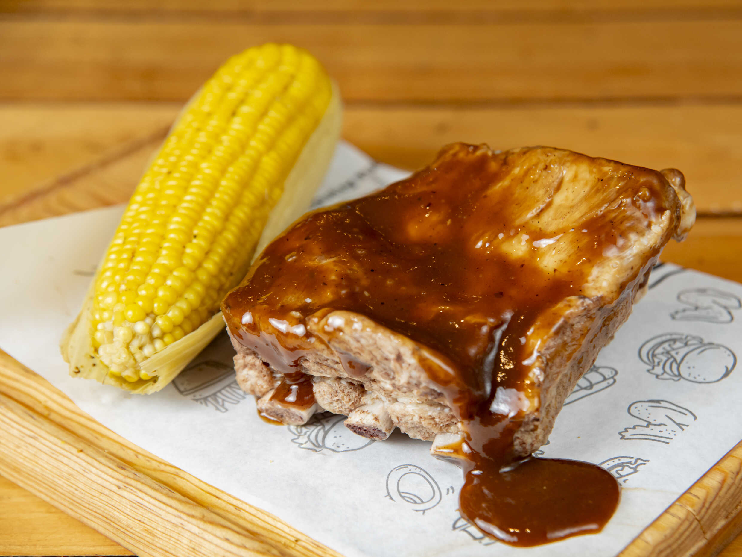 450 g aprox de costillas, elote amarillo sazonado