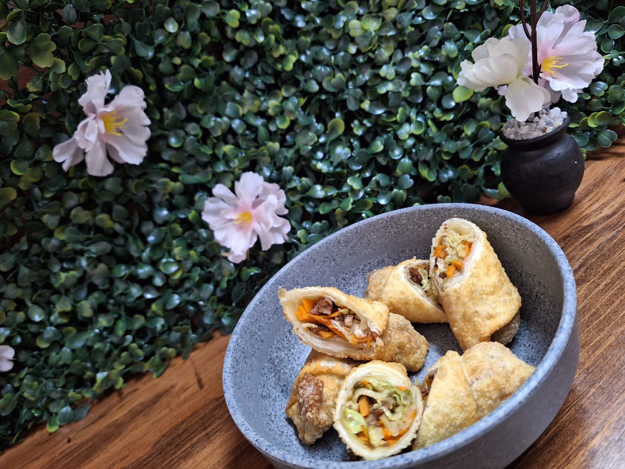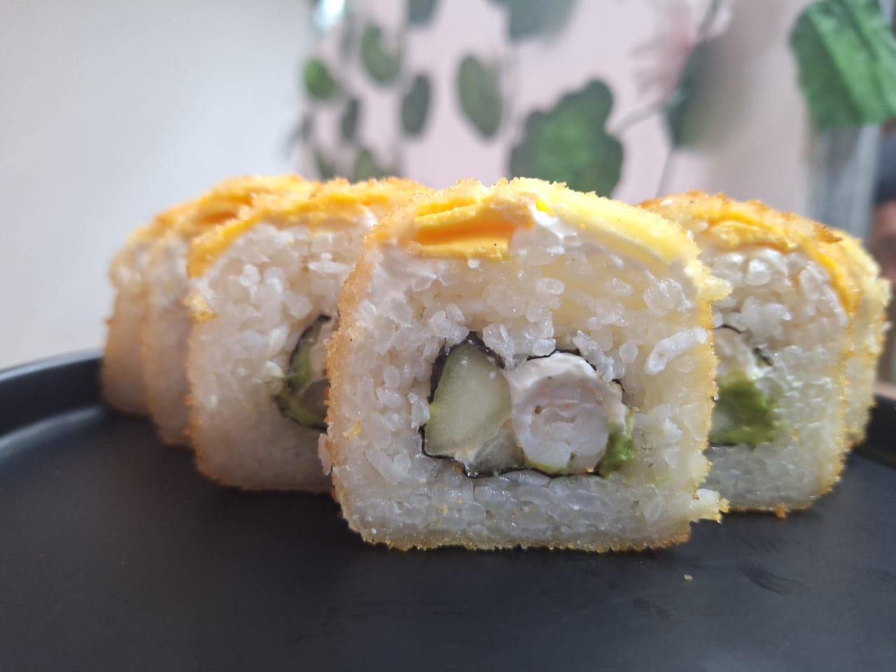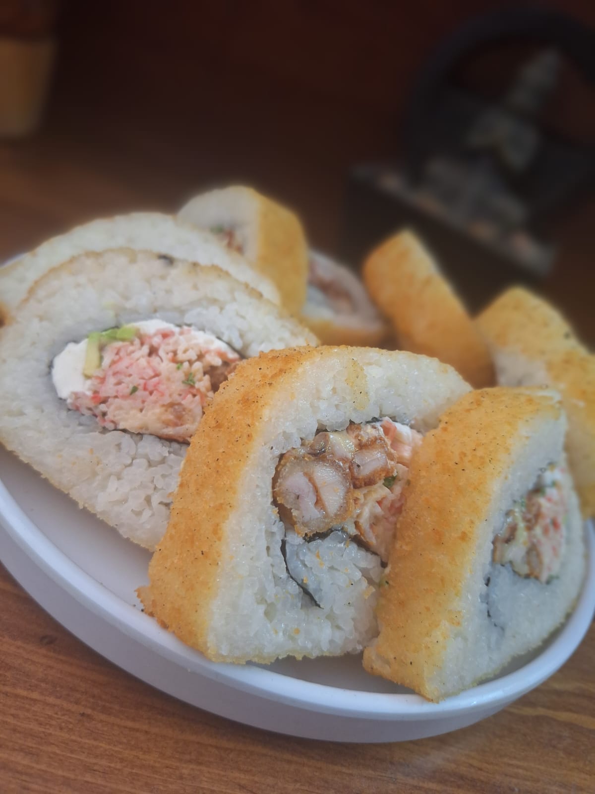 Sushi frito relleno de aguacate, philadelphia, pepino, camarón y res.