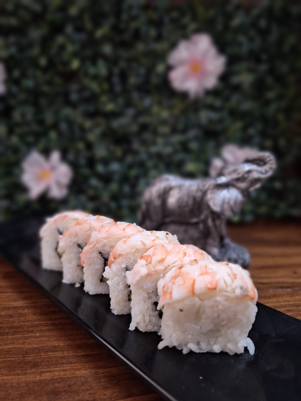 Sushi natural forrado de camarón, relleno de aguacate, pepino y philadelphia.