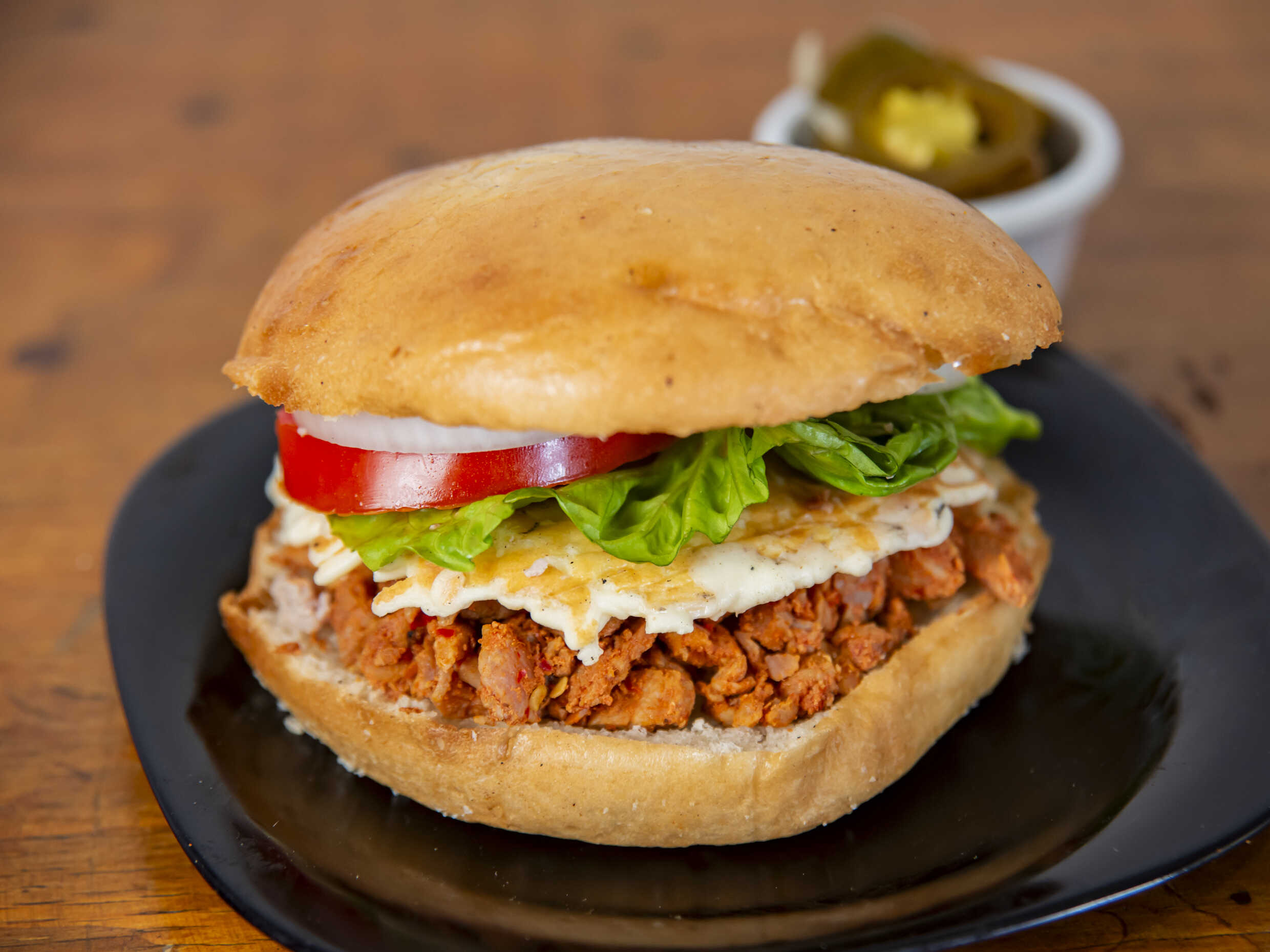 costra de queso asada y chorizo pan con mantequilla, aderezo especial, sobres de catsup