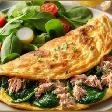 Atún preparado con jitomate en trocitos , pepino , queso suizo , espinaca , hojuelas de aguacate y aderezo de miel de la casa