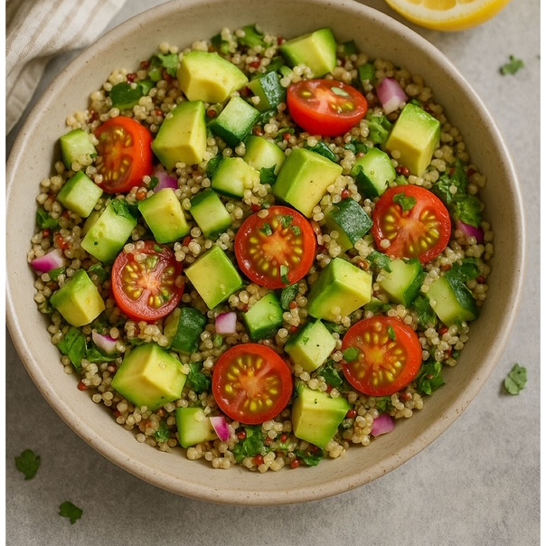 Jitomate cherry, aguacate , pepino , philadelphia y chile serrano asado , vinagreta de la casa