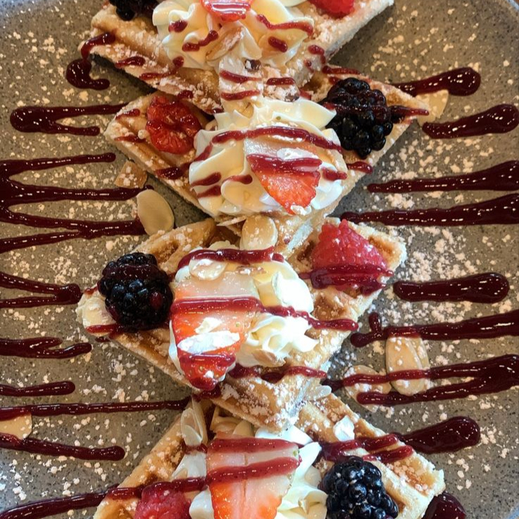 bañados con mermelada natural de berrys y decorados con crema batida (3 pzas)