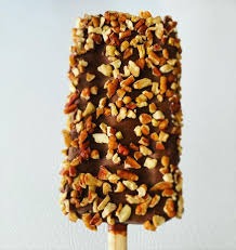 Paleta grande cubierta de chocolate con nuez.
