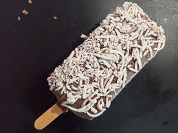 Paleta grande cubierta de chocolate con coco tostado.
