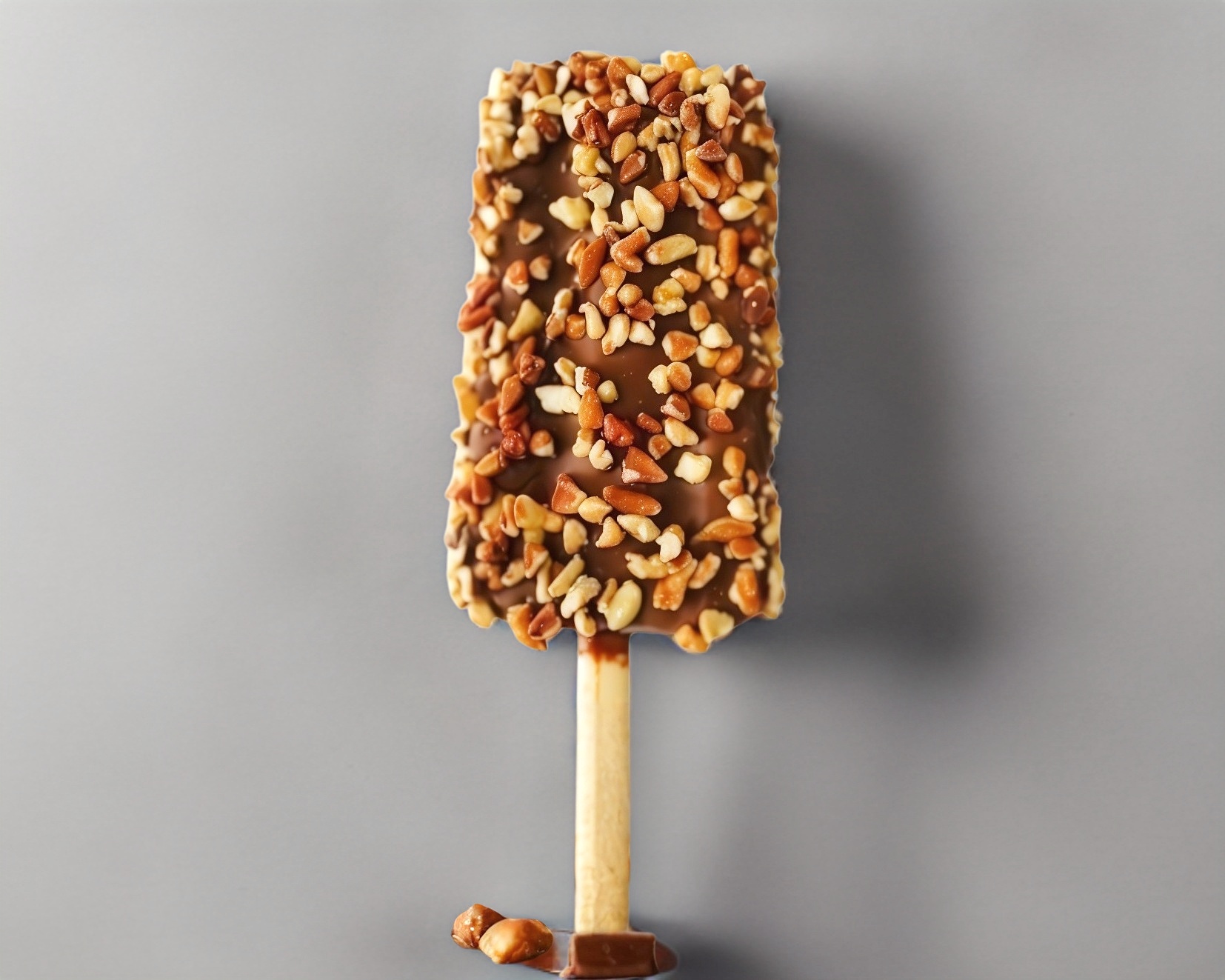 Paleta grande cubierta de chocolate con nuez.