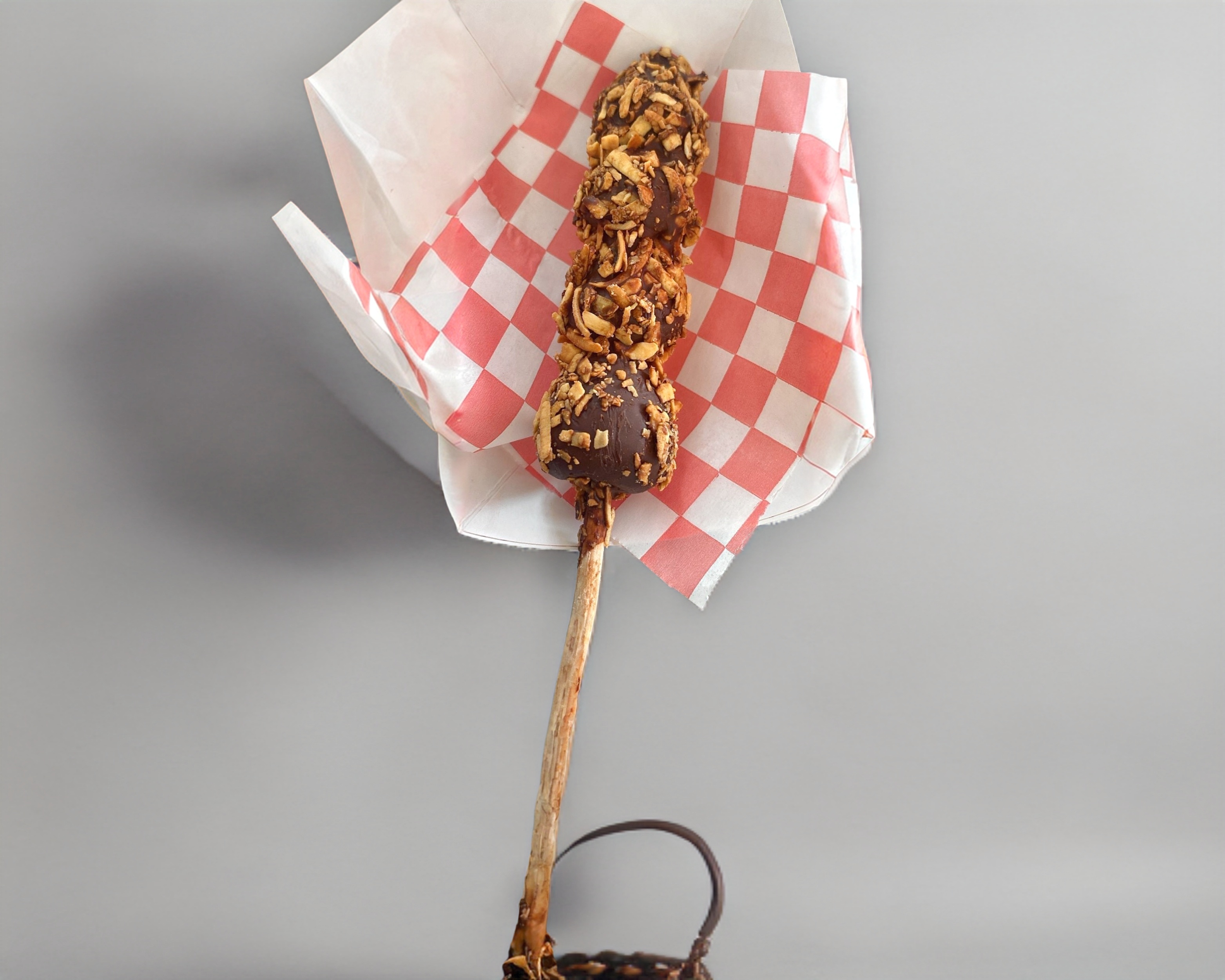 Pequeña paleta cubierta de chocolate.