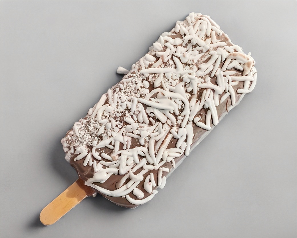 Paleta grande cubierta de chocolate con coco tostado.