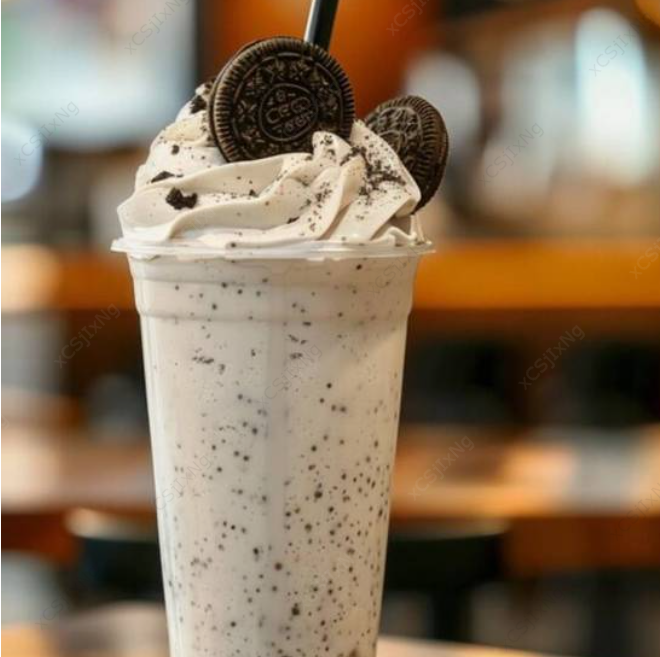 Acompañada de crema batida, espiral de chocolate y adornada con galleta Oreo.
