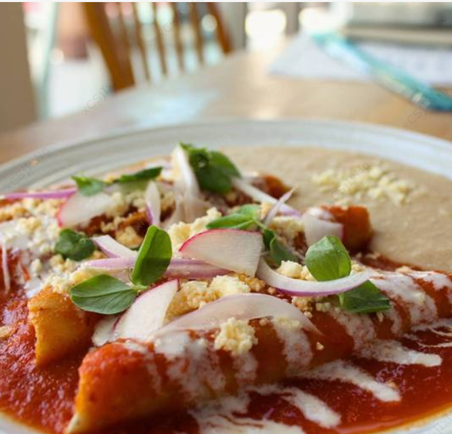 Acompañados con frijoles, crema y queso de mesa o ensalada de espinaca con aderezo de reducción de vino tinto.