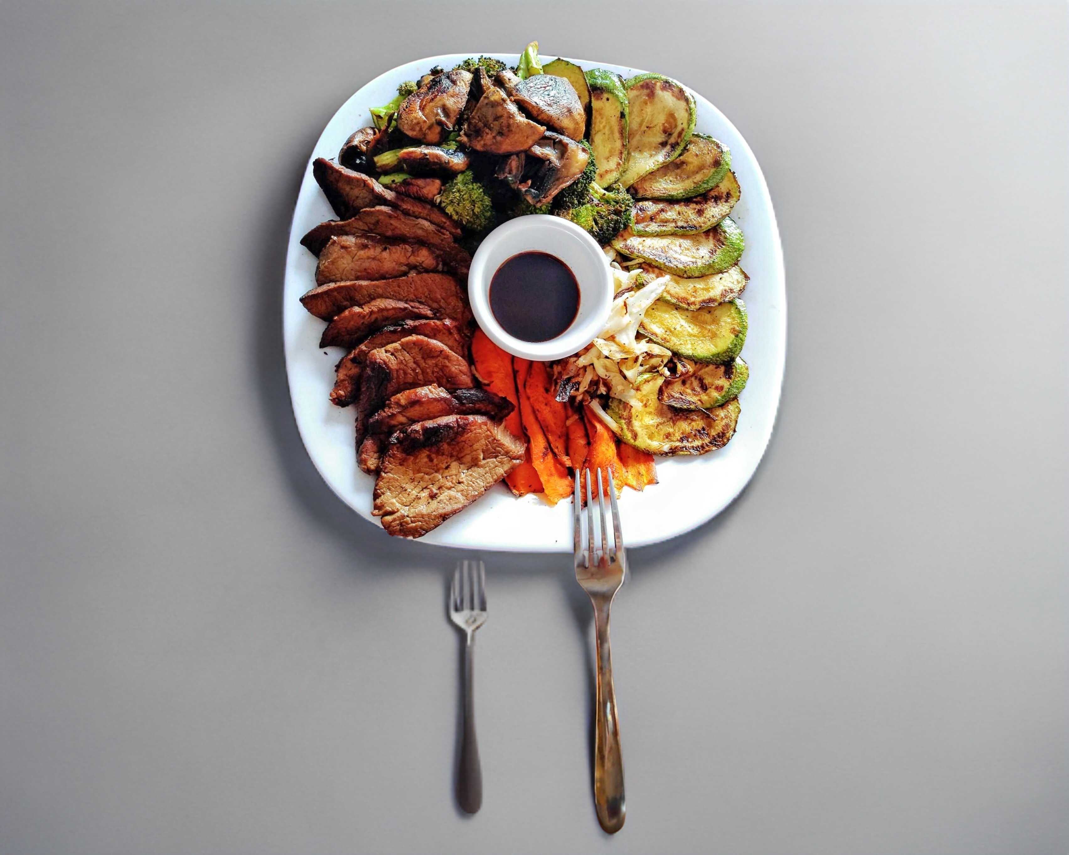 Vegetales variados, champiñon, zanahoria, calabaza y brocoli + 150gr de caña de res+ 150gr de arroz al vapor + aguacate. 450gr aproximadamente