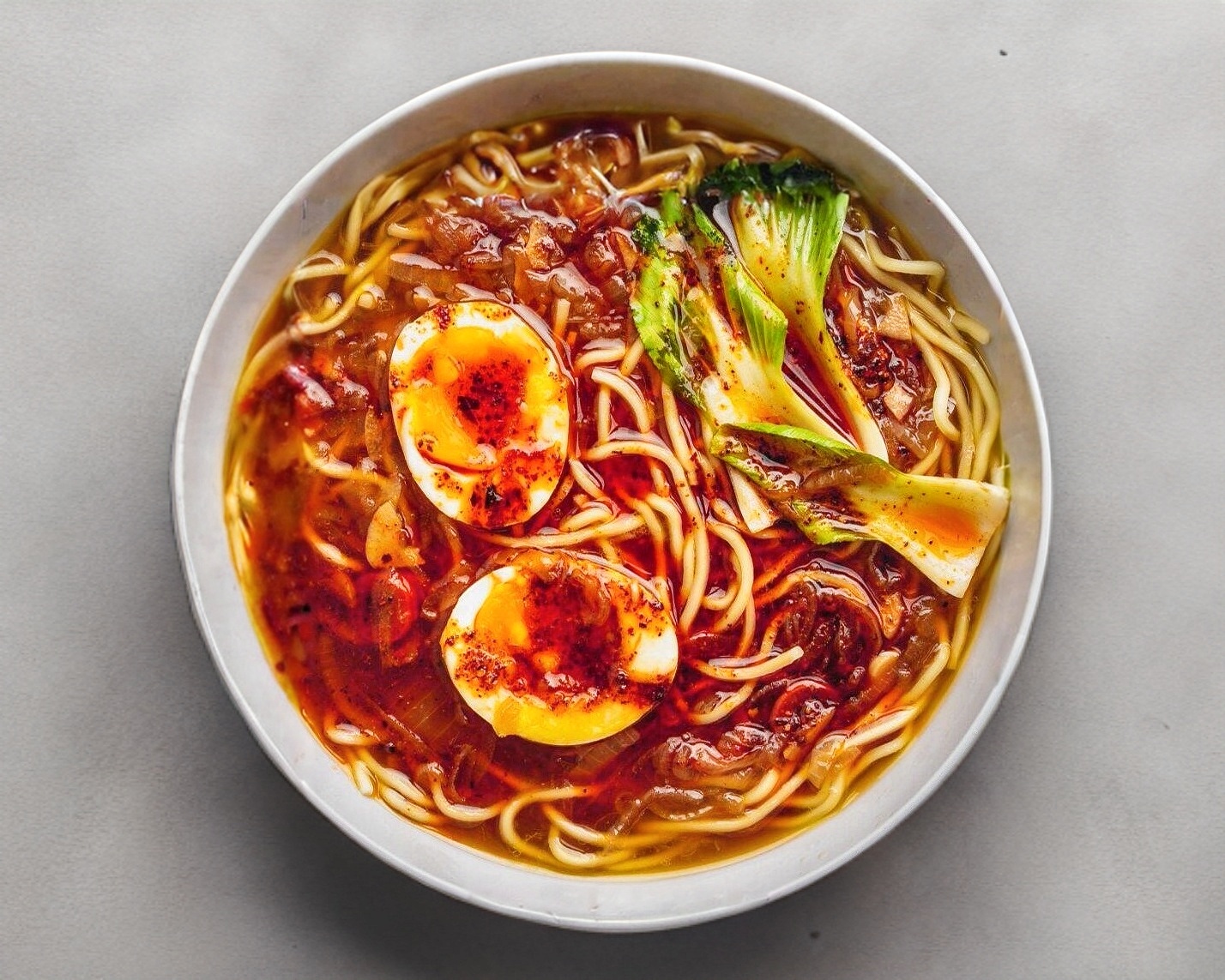 Fideos ramen de trigo en caldo soya con proteina a elegir entre pollo, res o camaron, vegetales, huevo pochado y una mezcla picante de wassabi, chile de arbol y chile chiltepin, huevo ponchado y más, ultra picante