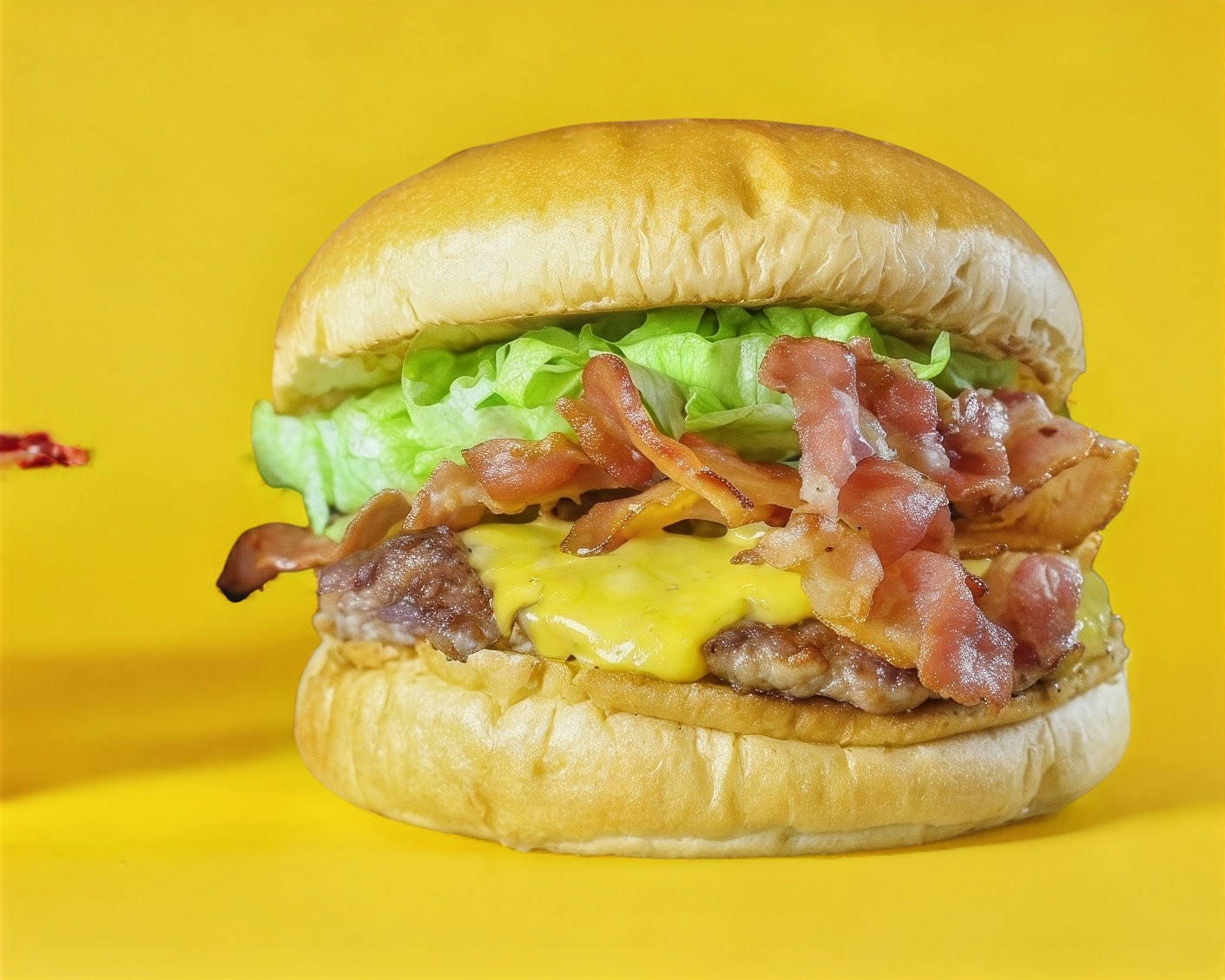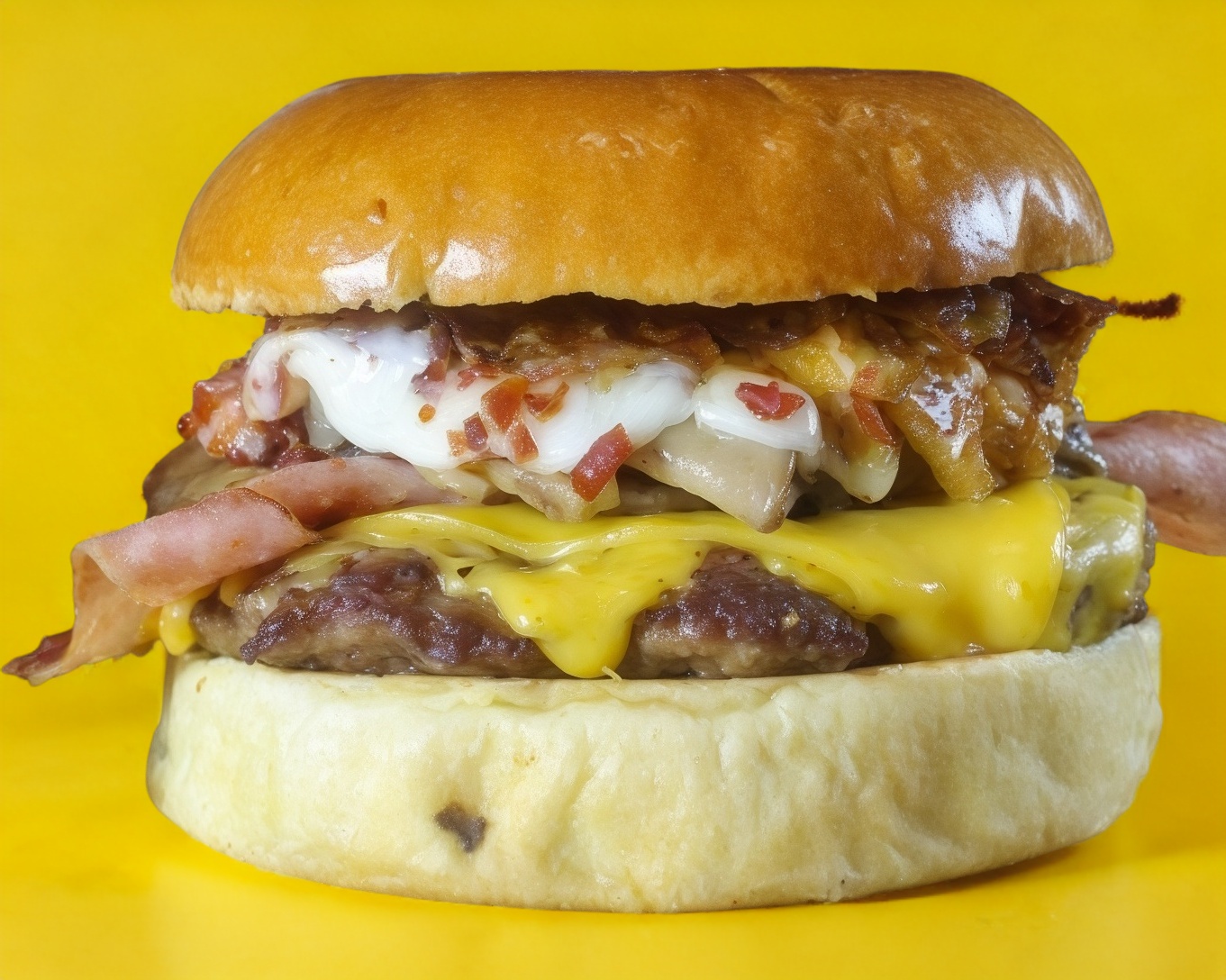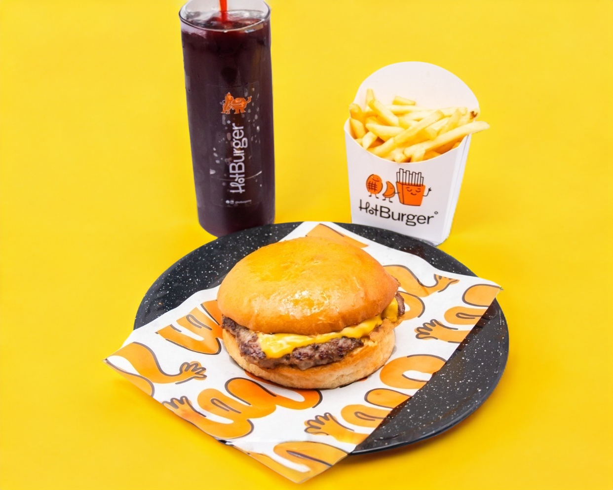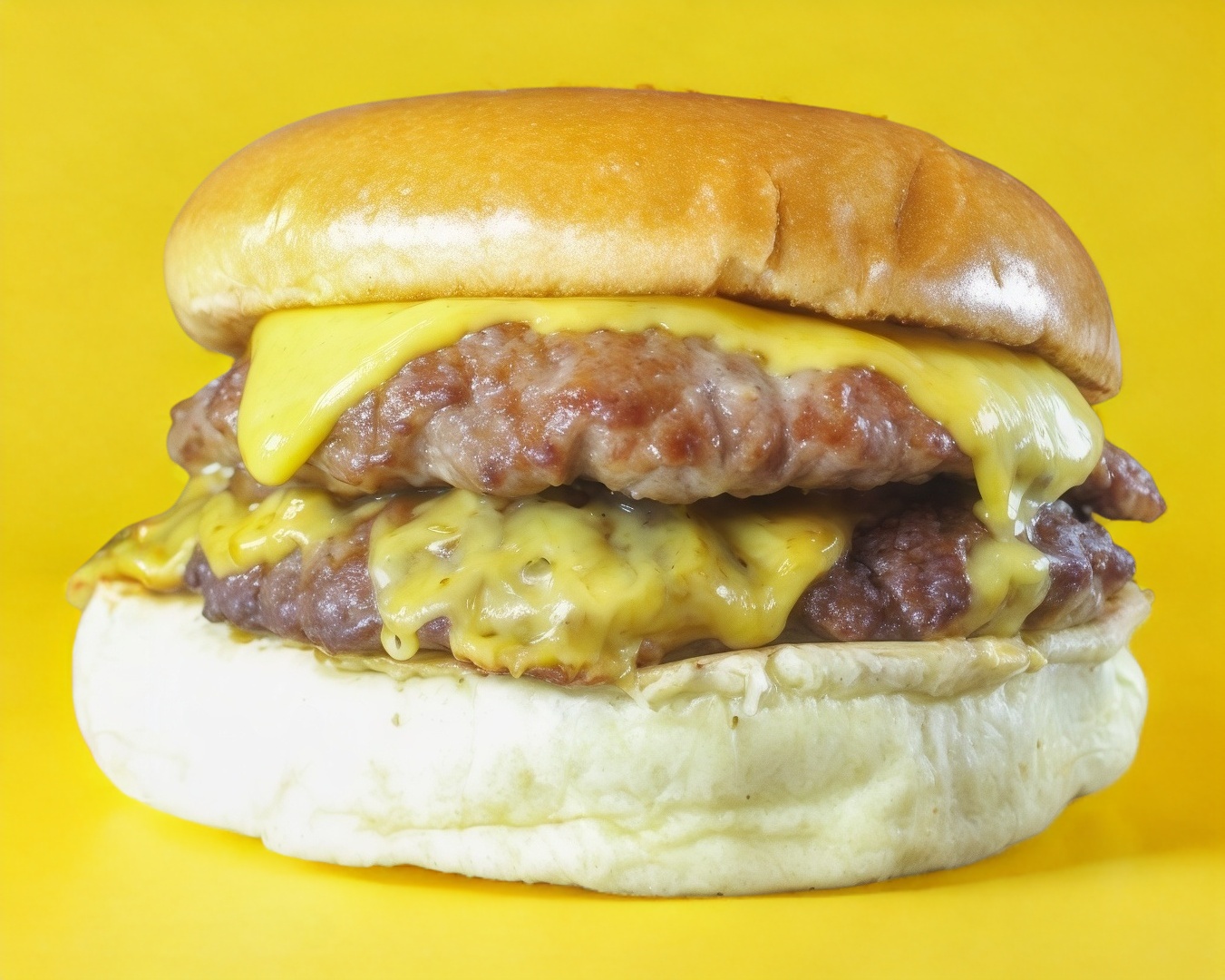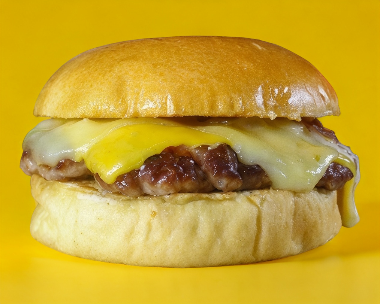La hamburguesa clásica y exquisita. Carne de res y queso amarillo.