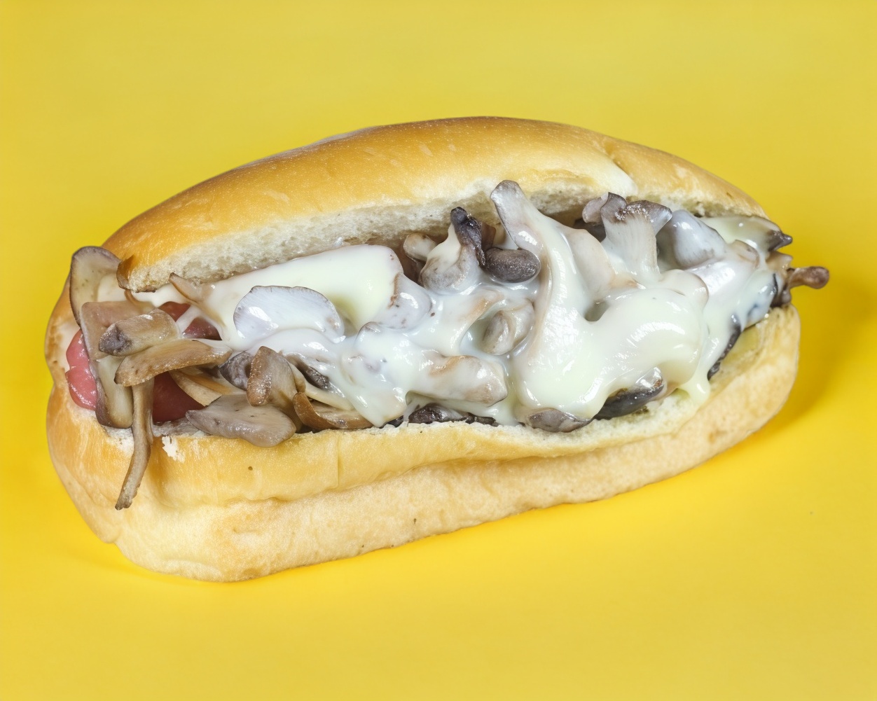 De los más pedidos, salchicha de pavo envuelta en tocino, Champiñón y queso gouda derretido.