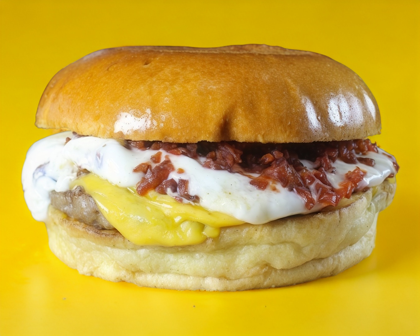 No tiene nada mexicano más que el nombre, lo importante es el sabor. Carne de res, tocino doradito y queso amarillo.