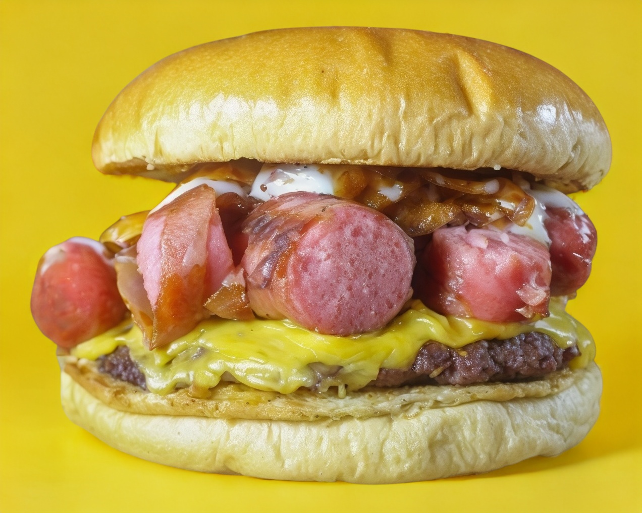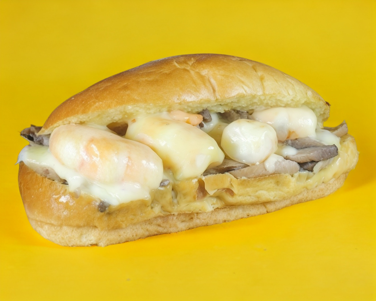 Para los amantes del cheese; Carne de res y 3 quesos derretidos (gouda, cheddar y oaxaca), acompañada de jitomate, cebolla, mostaza y cátsup.