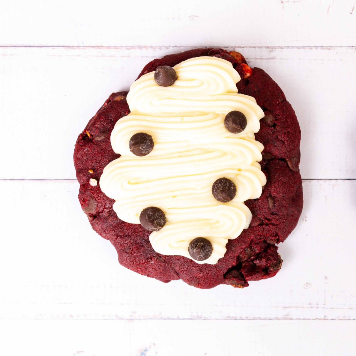 Galleta crujiente por fuera y suave por dentro, sabor Red Velvet.