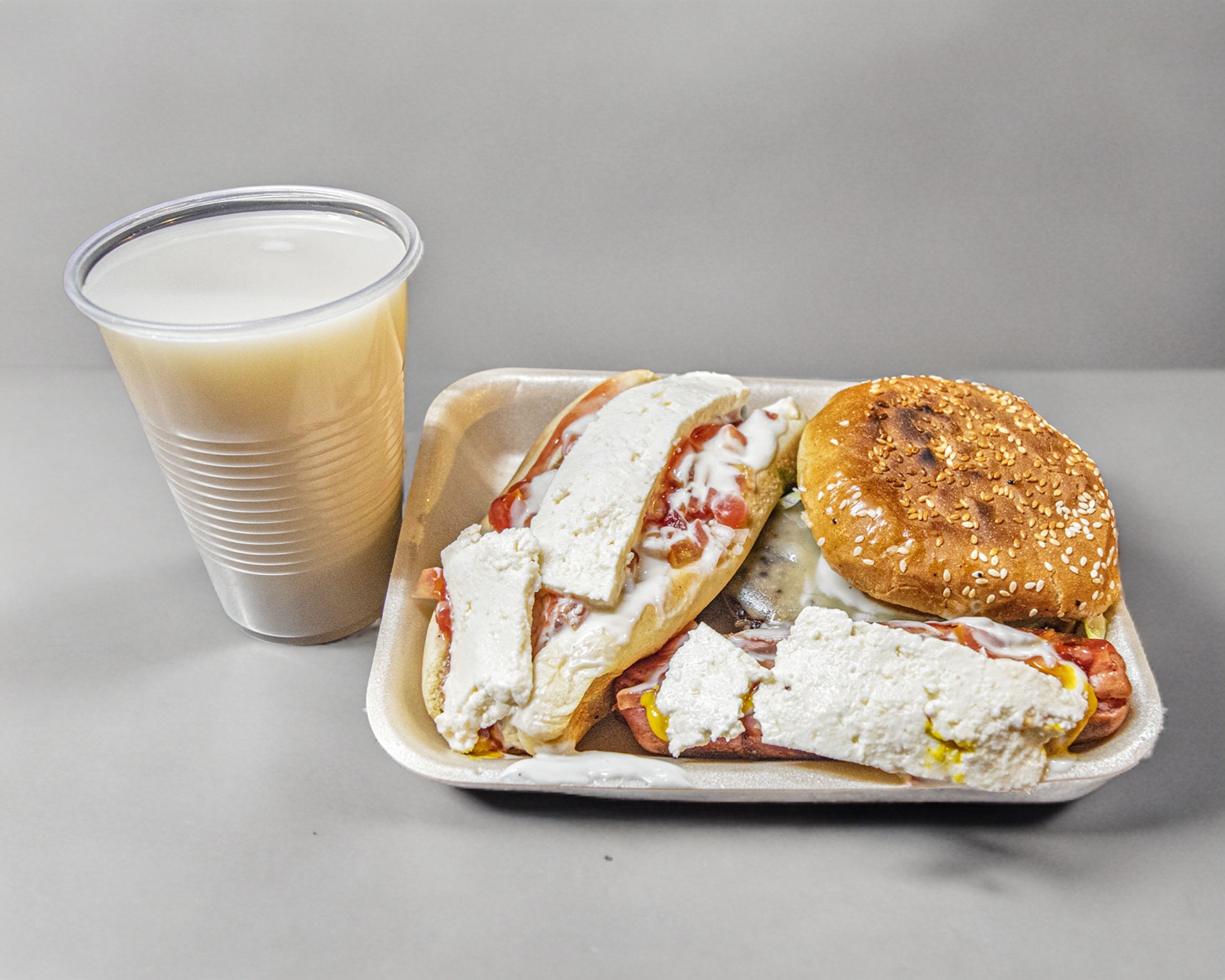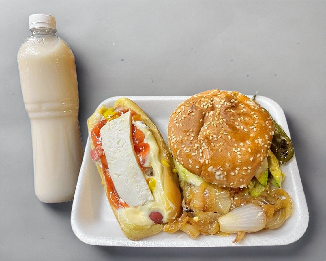 1 hamburguesa sencilla, 1 hot dog sencillo y 1 agua fresca