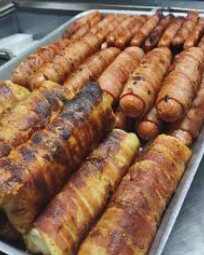 Queso amarillo, jamón, salchicha, queso Philadelphia y tocino.