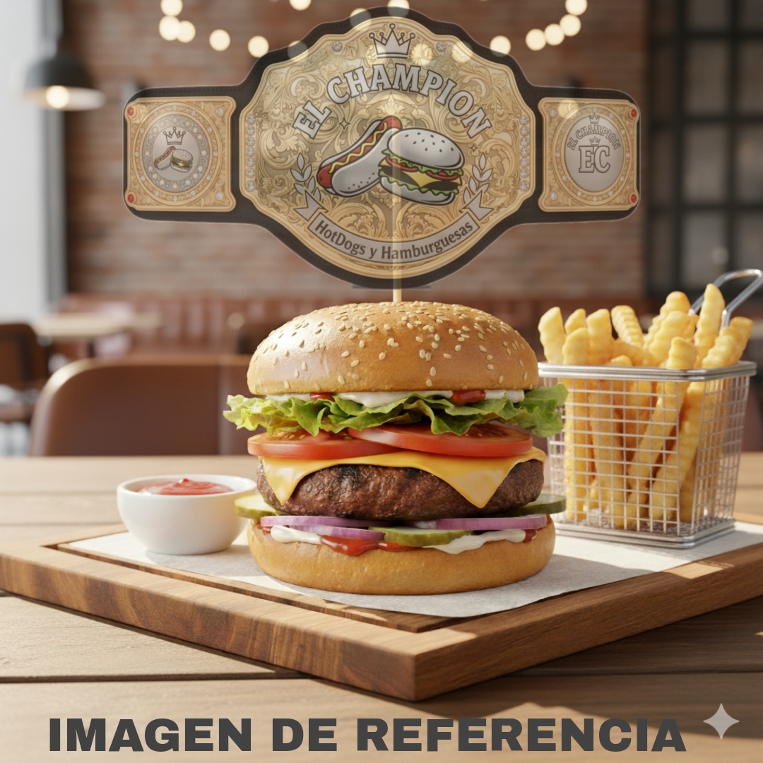 Nuestra Clásica Hamburguesa acompañada de deliciosas y crujientes papas a la francesa