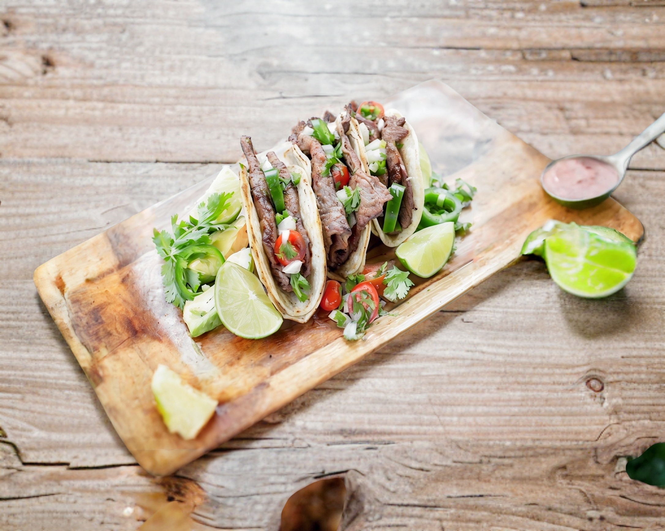 Tortilla grande con asada acompañado de cilnatro cebolla y chile de la casa (verdura se sirve por separado).