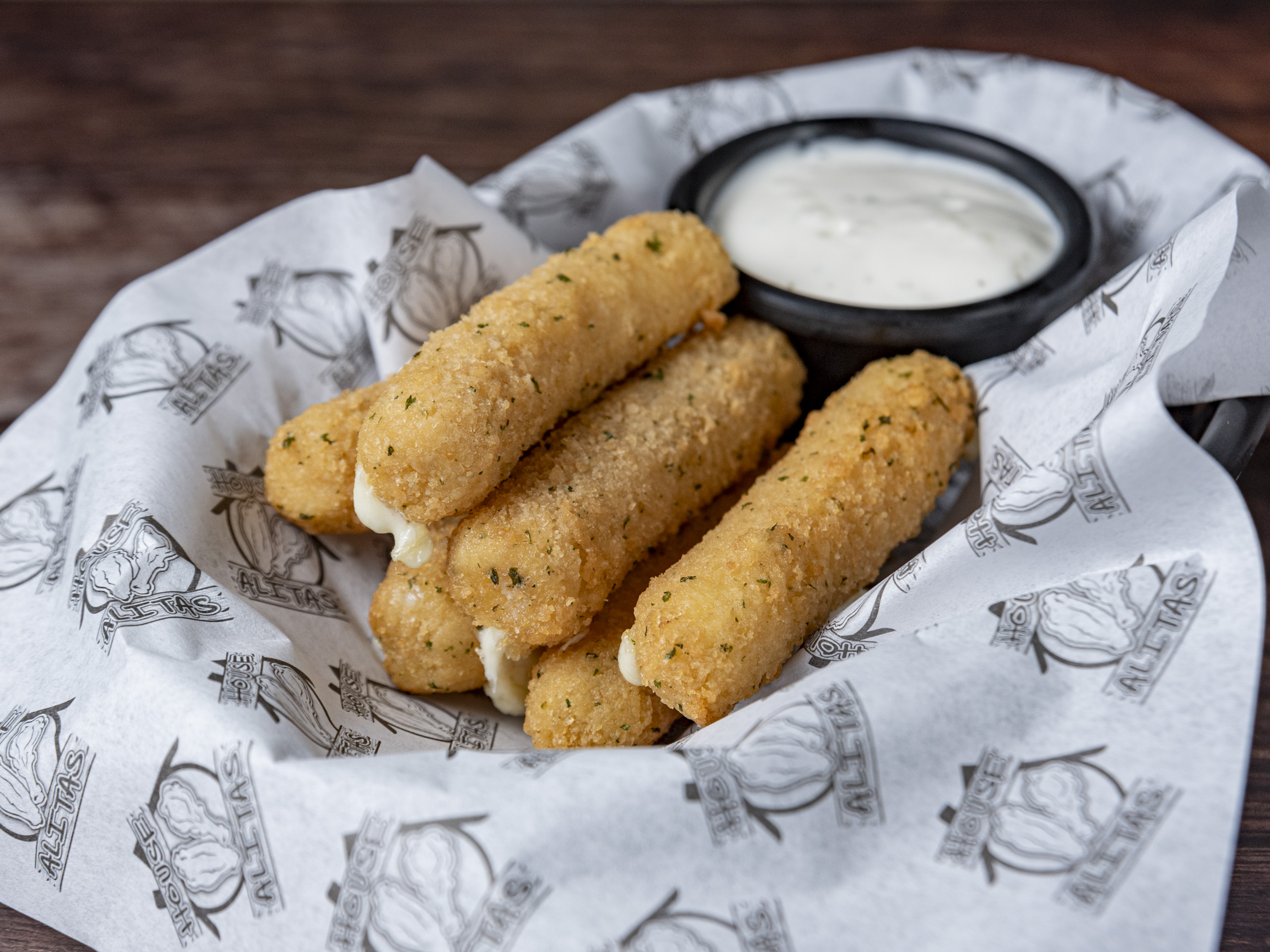 dedos de queso mozarella acompañados con ranch