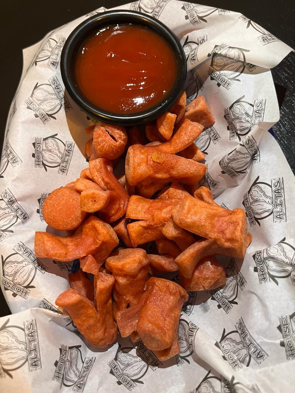 salchipulpos tradicionales con un dip de catsup
