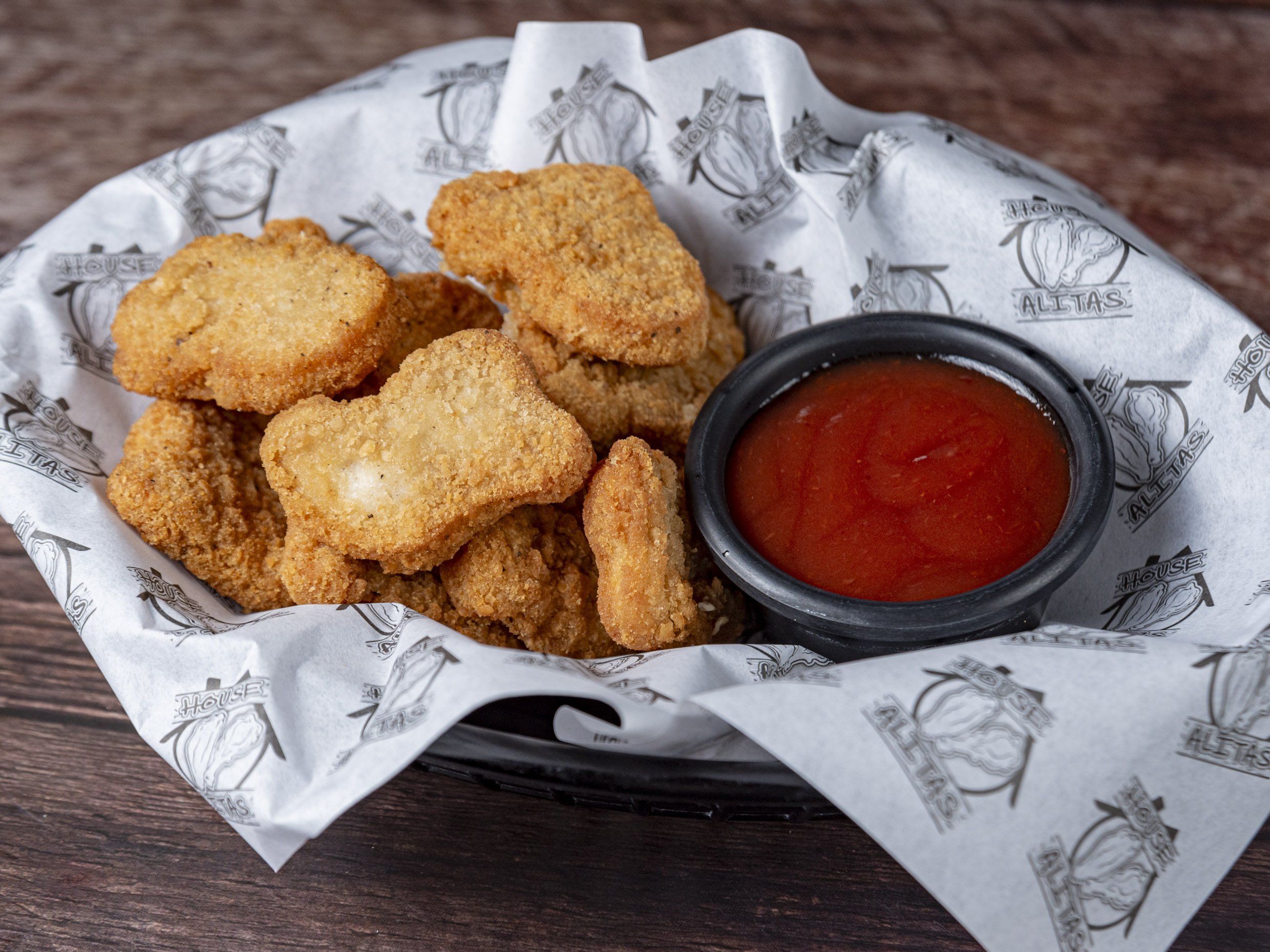nugets acompañado de catsup.