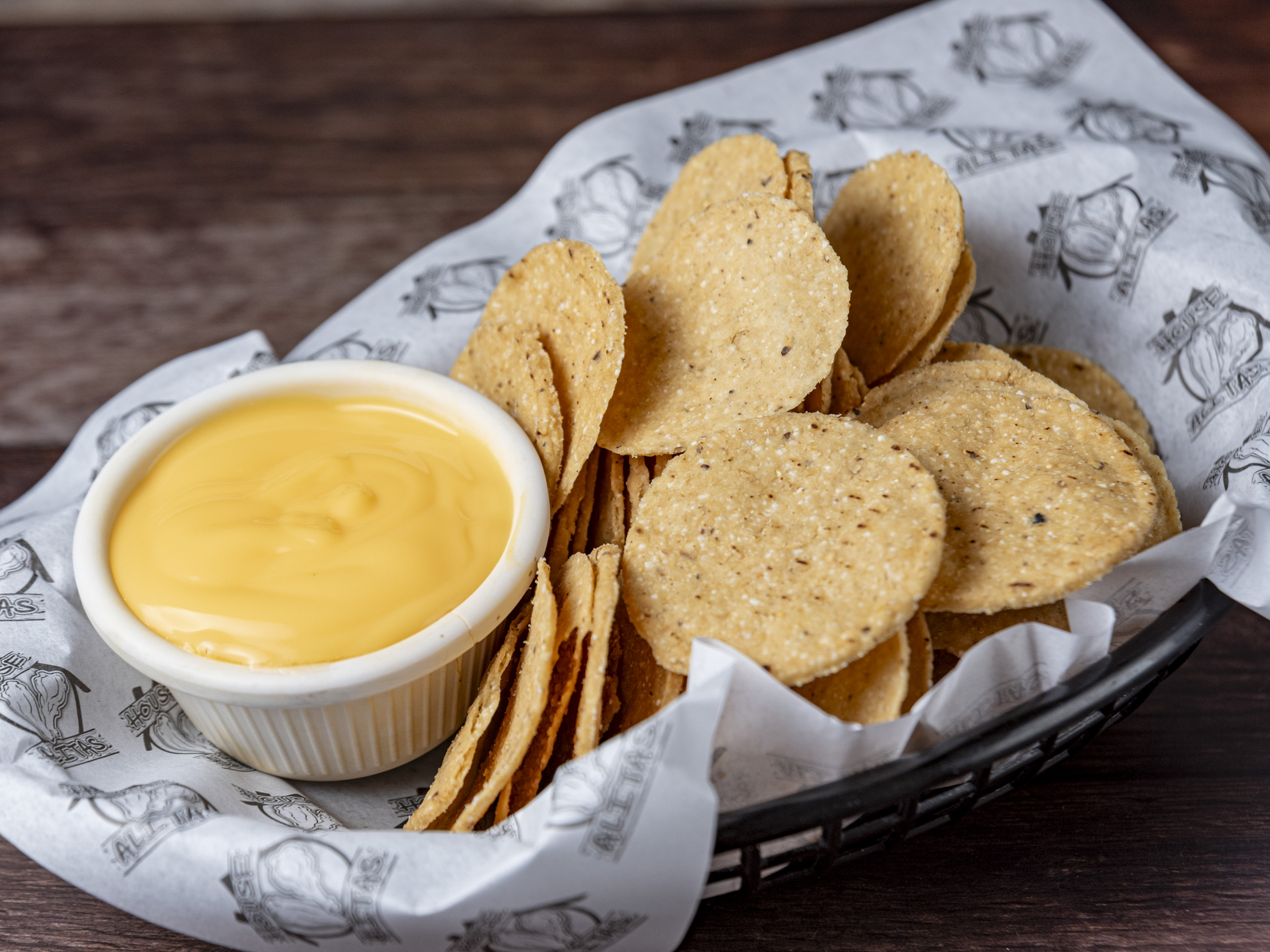 nachos acompañados de queso amarillo y jalapeño.