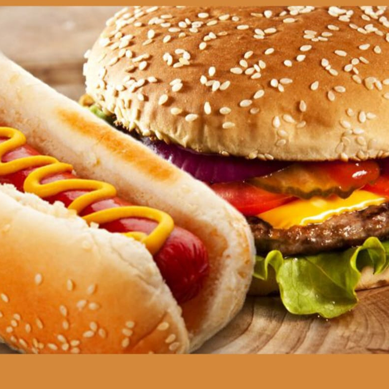 Pan, con carne jugosa con tocino, queso amarillo, queso blanco, jitomate, cebolla, lechuga, catsup, crema, mayonesa, mostaza