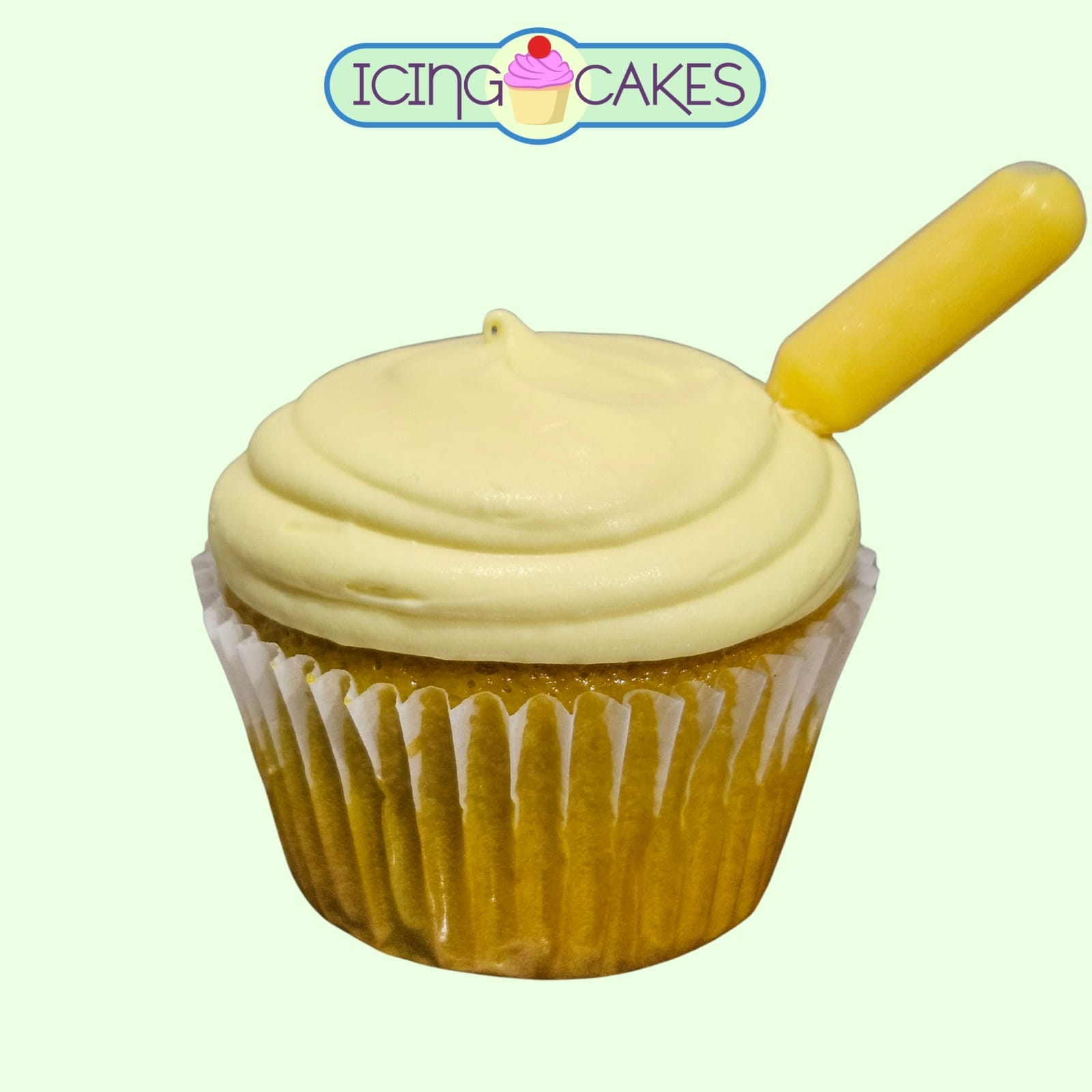 Pan de limón, relleno de crema de limón, decorado con betún de queso Philadelphia de limón.