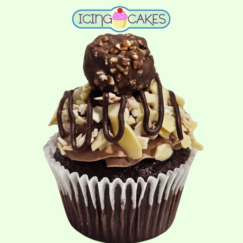 Pan de chocolate, relleno de chocolate de avellana, decorado con betún de queso Philadelphia de chocolate, almendra, chocolate Ferrero y ganache de chocolate.
