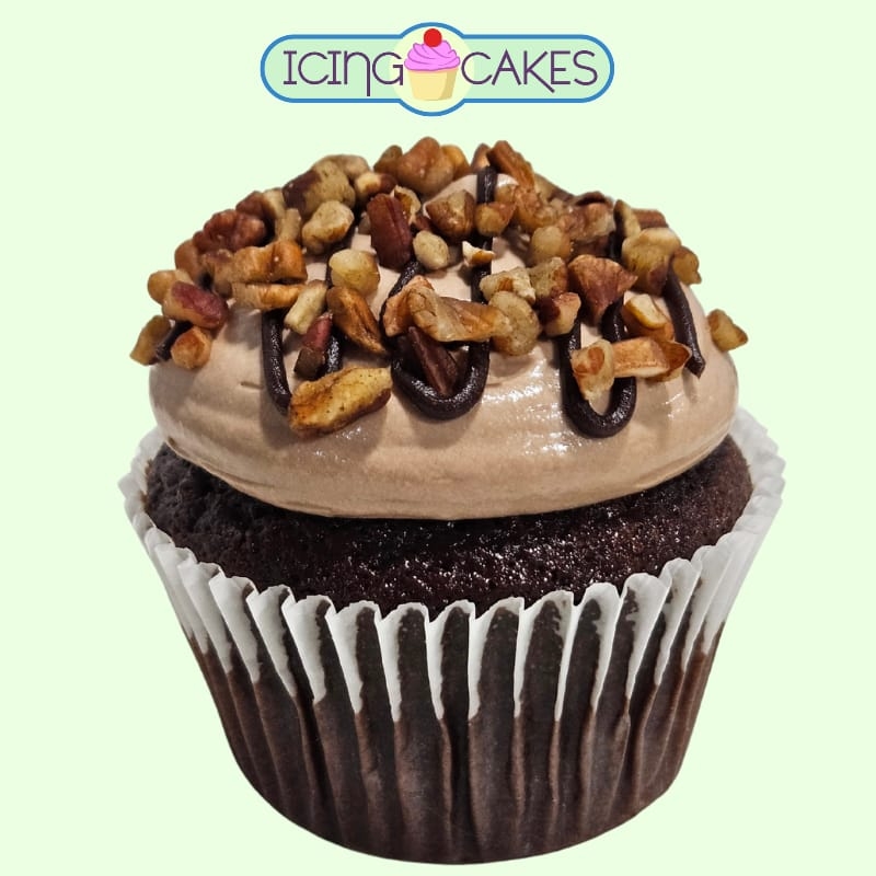 Pan de chocolate, relleno de Nutella, decorado con betún de queso Philadelphia de Nutella, nuez y ganache de chocolate.
