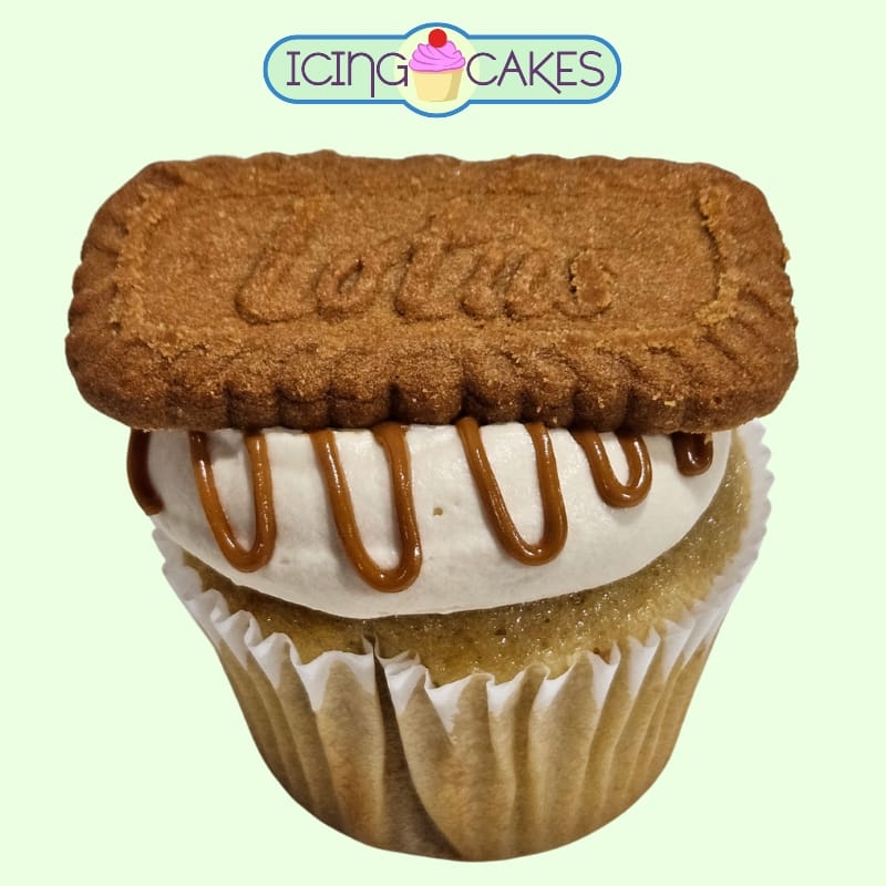 Cupcake sabor y relleno de crema lotus, cubierta de betún de queso Philadelphia de lotus.