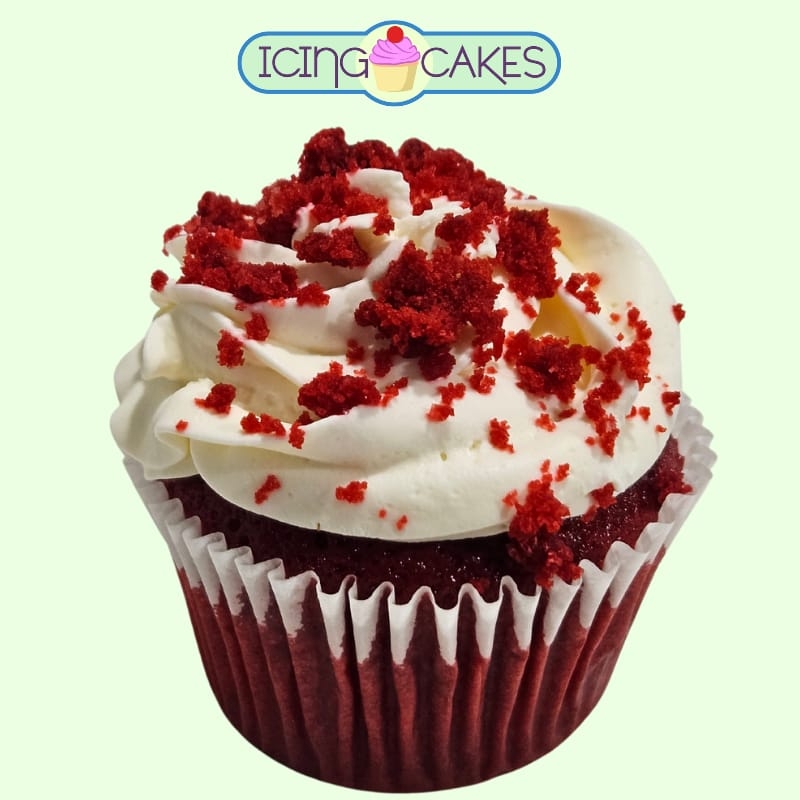 Pan de red velvet, relleno de mermelada de frutos rojos y queso Philadelphia, decorado con betún de queso Philadelphia.
