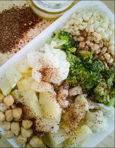 Papa, brócoli, zanahoria, chayote, y elote.
