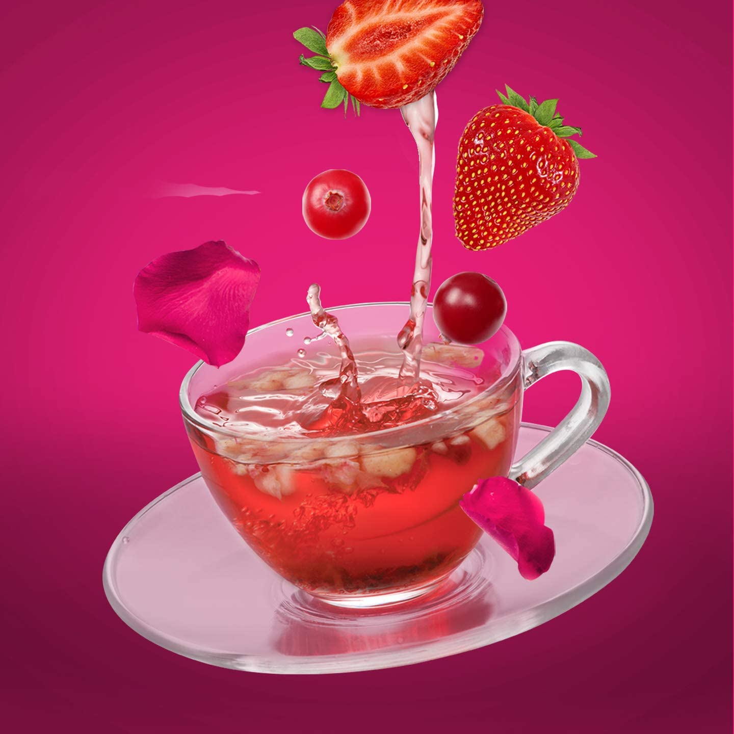 Fresa, arándanos, zarzamora y pétalos de rosa.