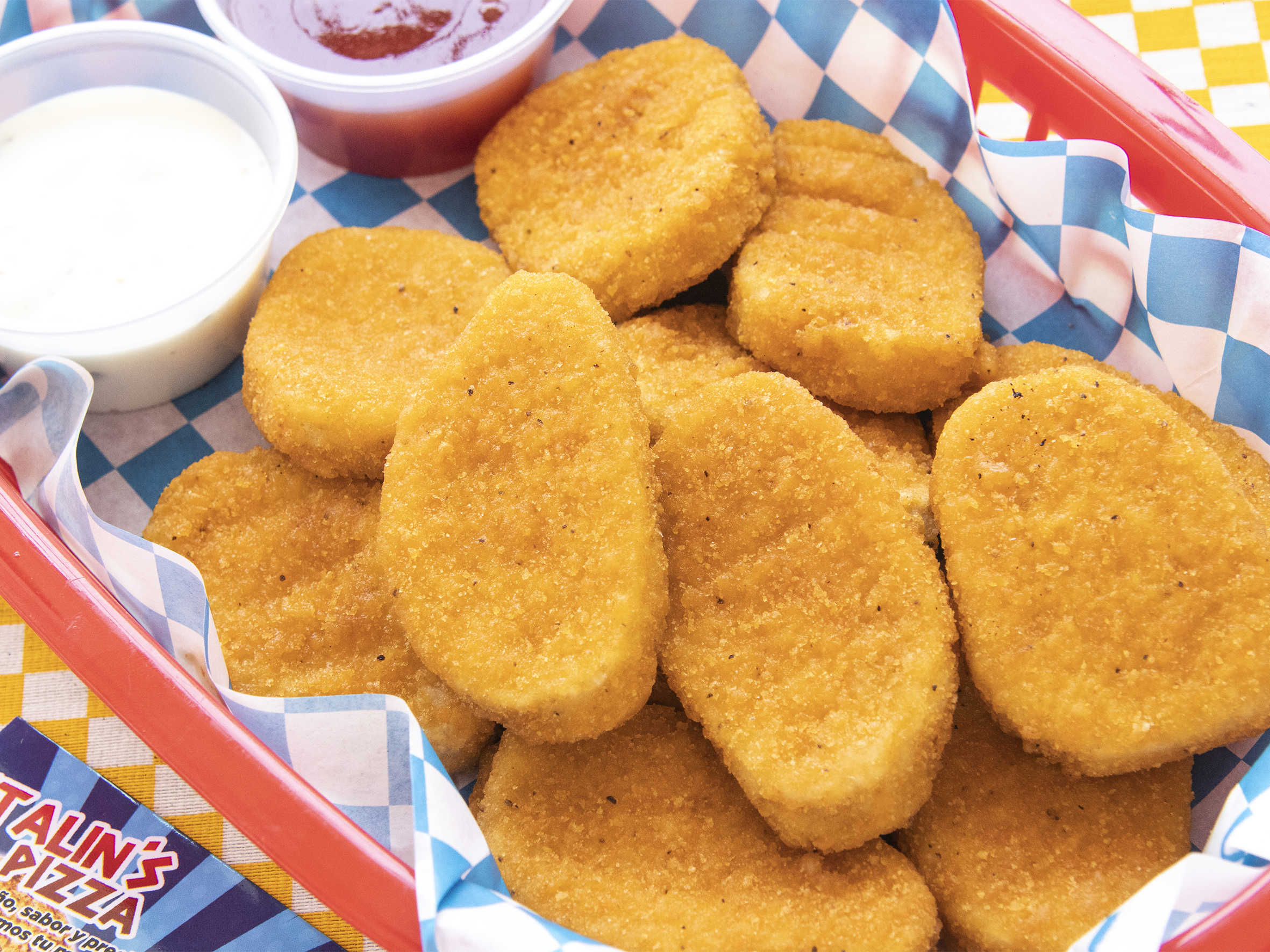 12 piezas preparados al horno (0 grasa añadida) servido con catsup, mostaza y aderezo ranch de la casa.