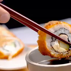 Sushi empanizado, pon dentro , philaderphia, pepino, zanahoria, aguacate.