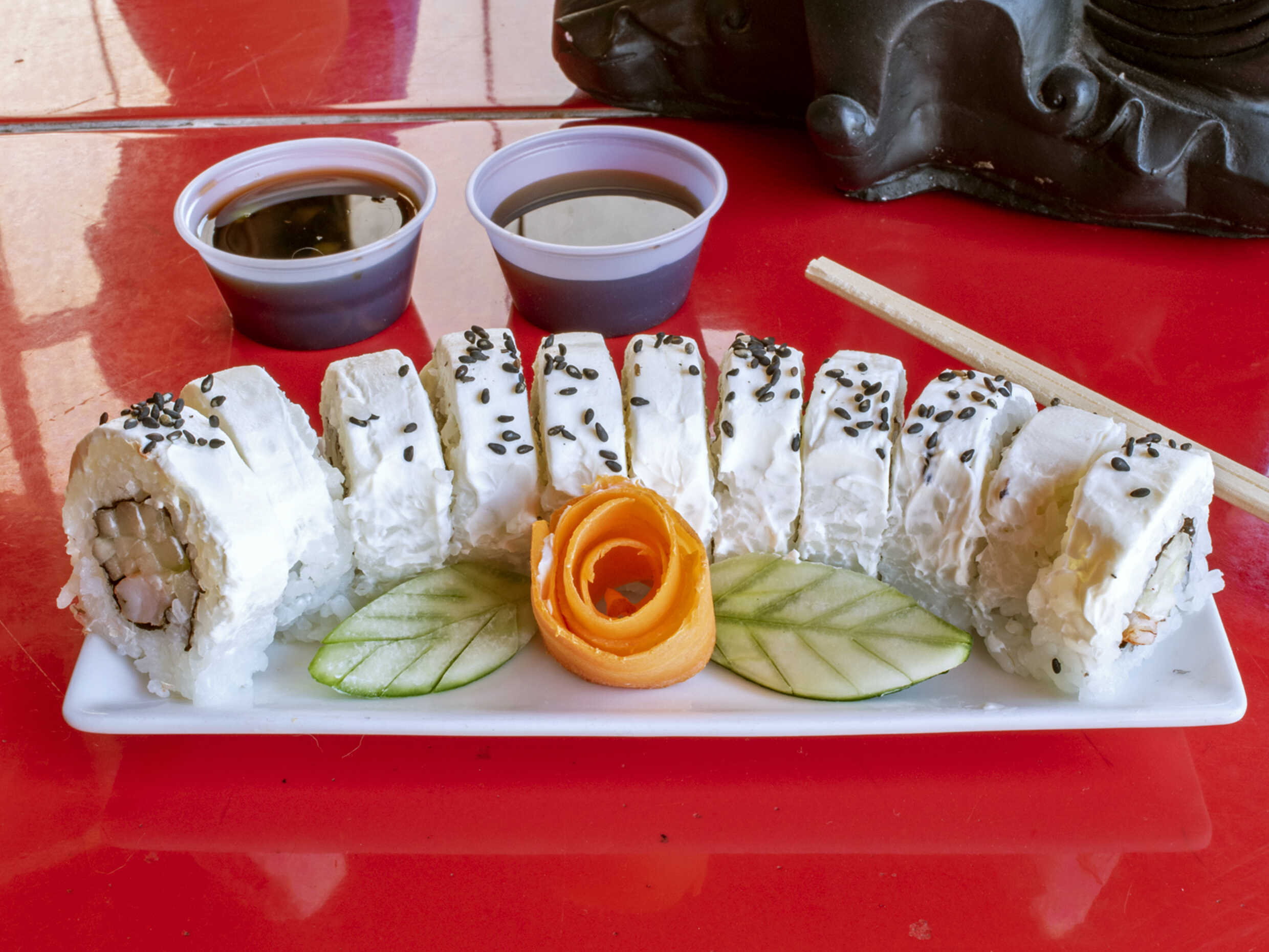 Philadelphia y ajonjolí, relleno de zanahoria, y pepino.