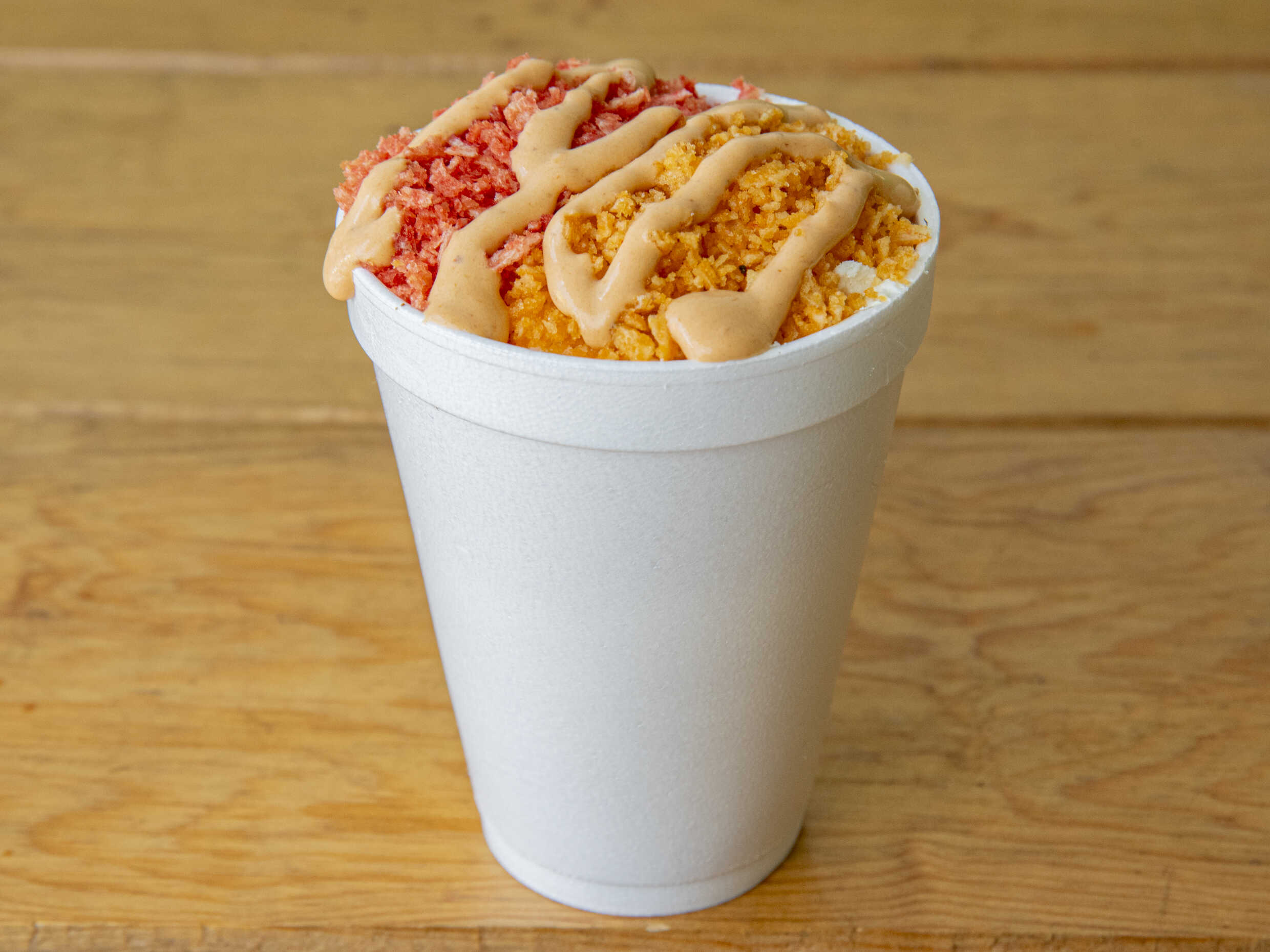 Deliciosa crema o mayonesa y queso cotija (de rancho), lo puedes aconmpañar con nuestra crema de chipotle y el picante de tu preferencia