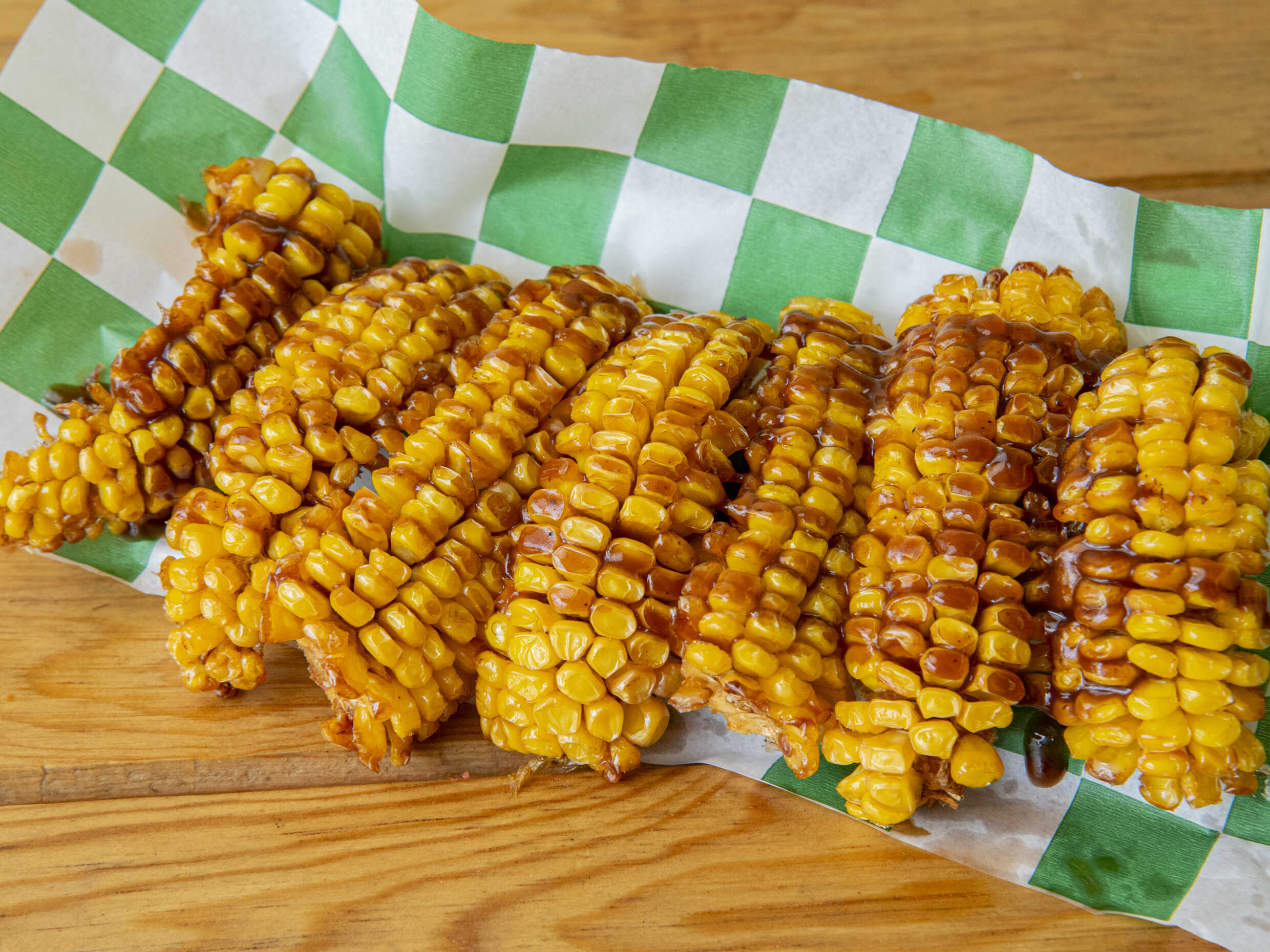 Delicioso elote tiernito, acompañado de caldo de elote, sal, limón y chile.