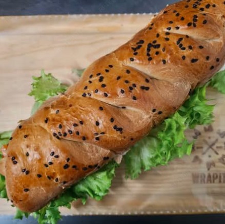Pan artesanal aprox 30cm, ingredientes pollo, mayonesa, lechuga,jitomate,pepino,aderezo ranch.